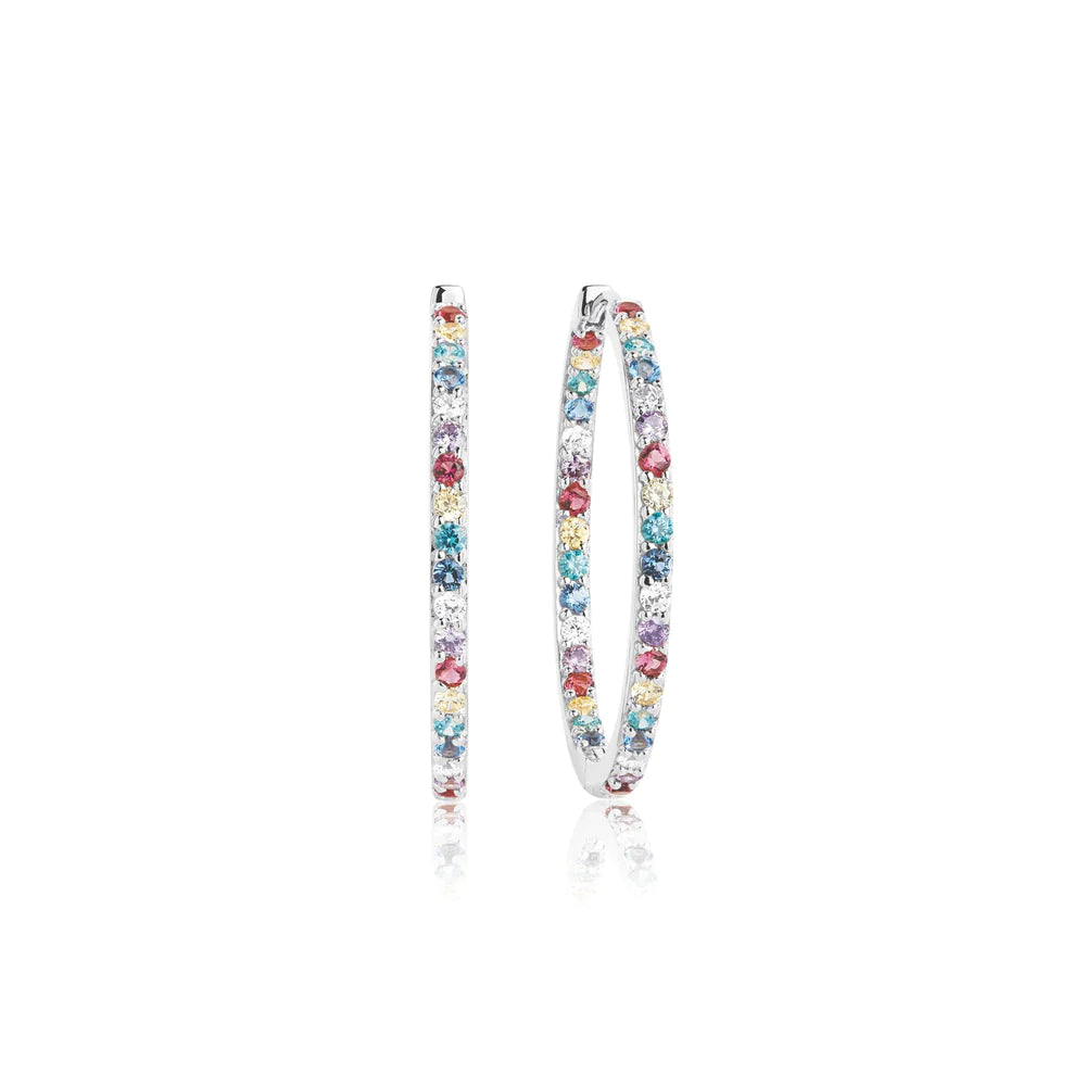 Øreringe i sterlingsølv 925 med blankpoleret overflade og facetslebne multifarvede zirkoner.